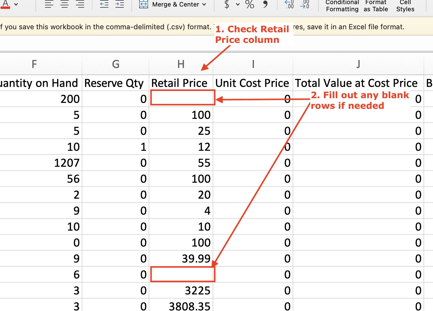 OneCart lets you keep a master list of retail prices for all your items. Here's where you can see what data you have stored.