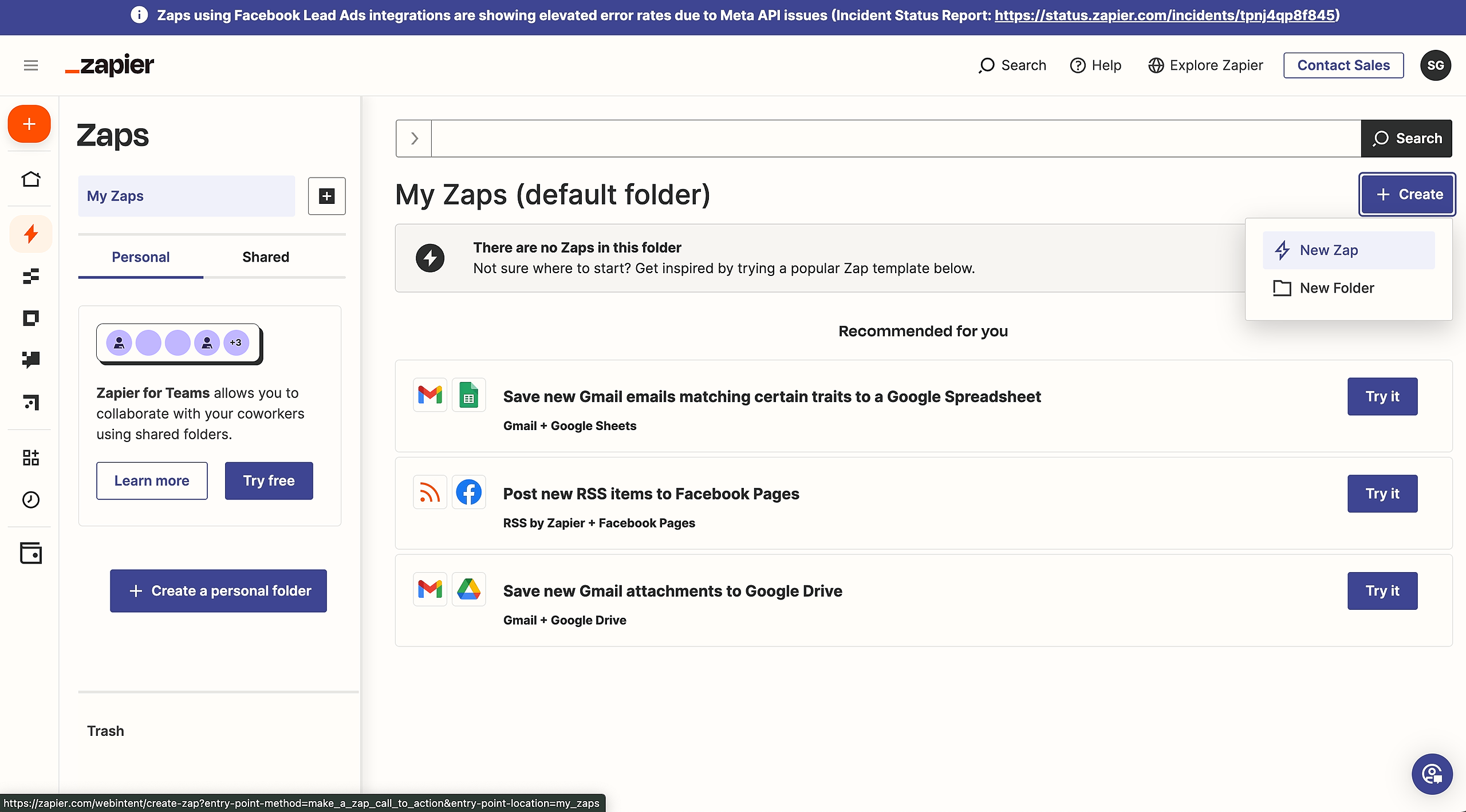 Step 4: On the left hand side menu bar - click on Zap, then click on create a New Zap