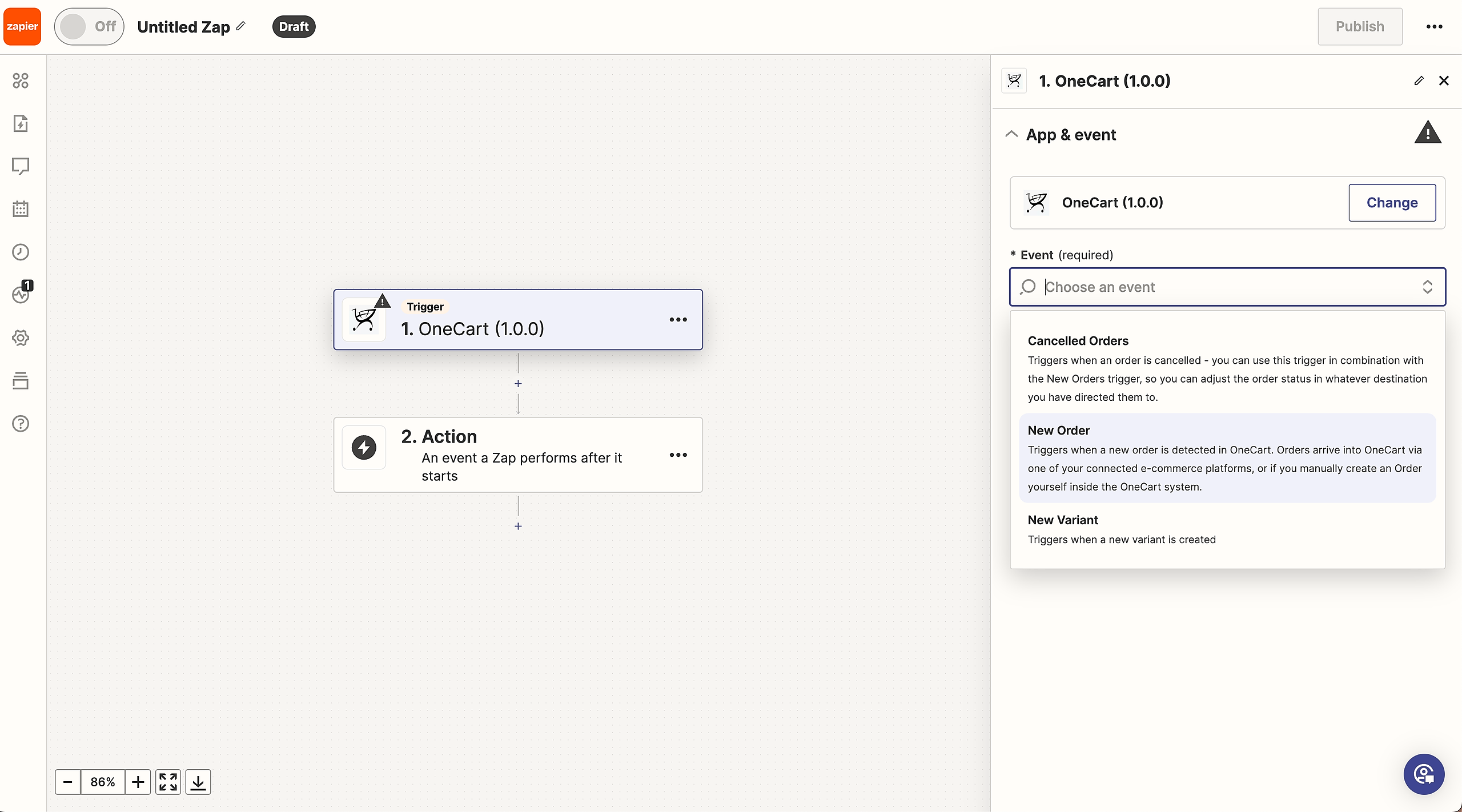 Connecting Zapier to OneCart
