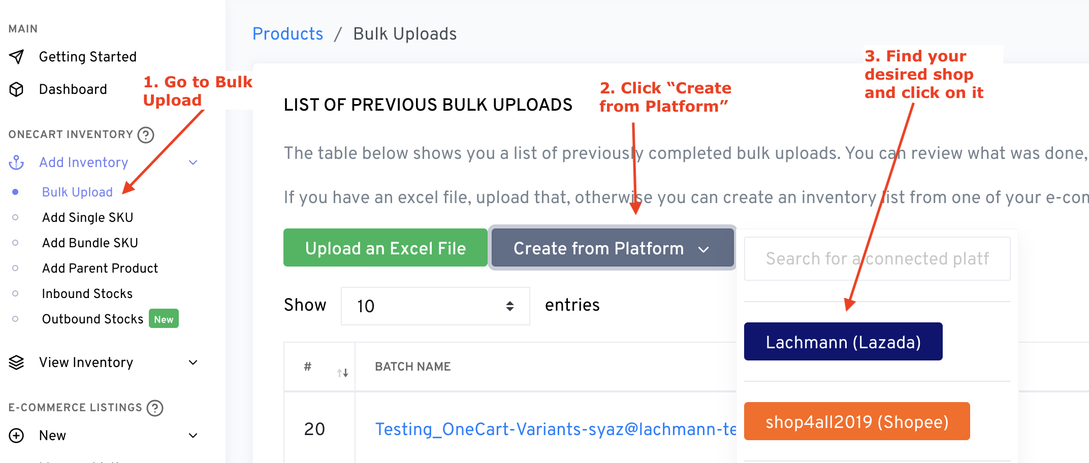 Another easy way to create a master inventory list in OneCart is by generating it from a platform you already have your product information on. Here's how to do it.