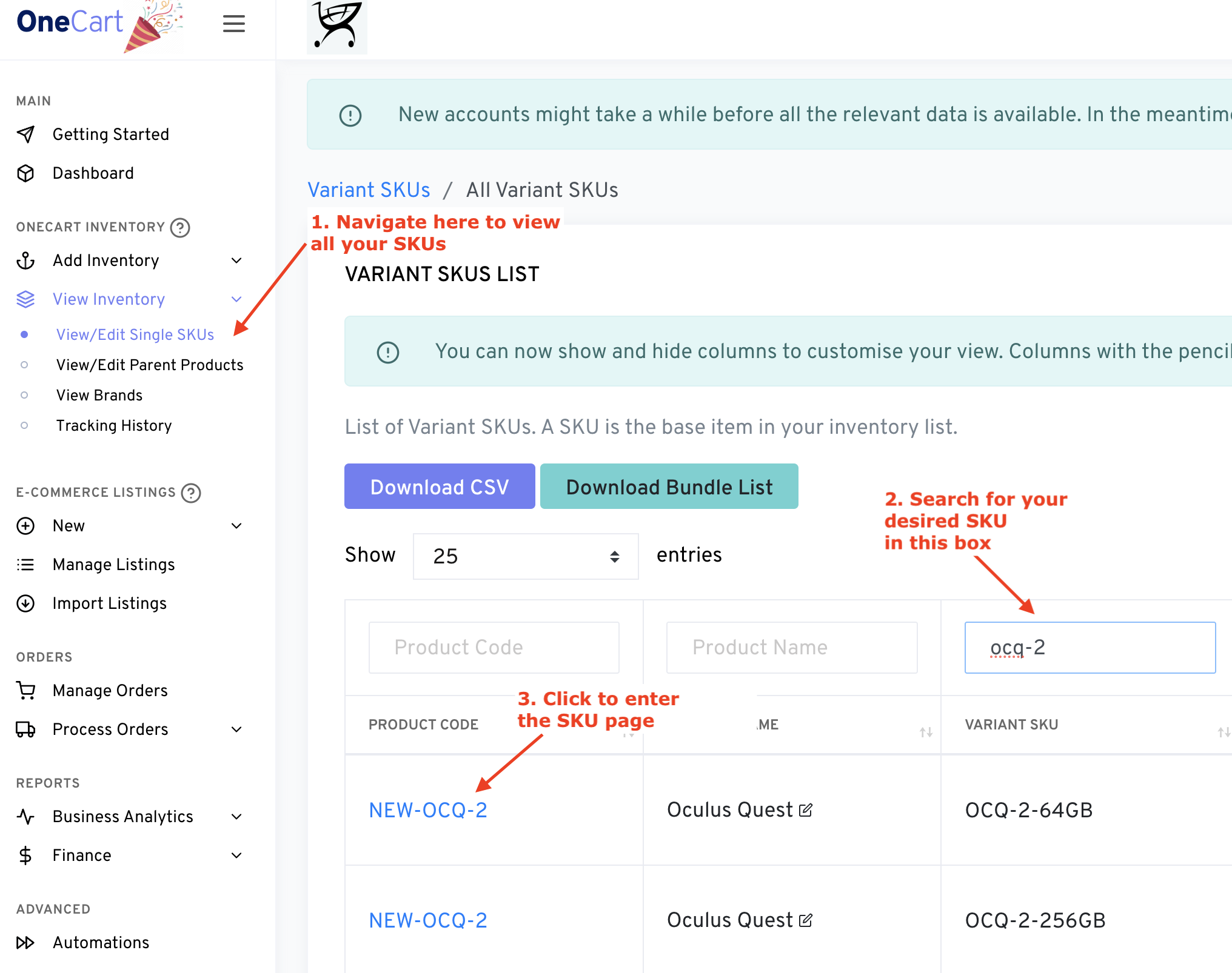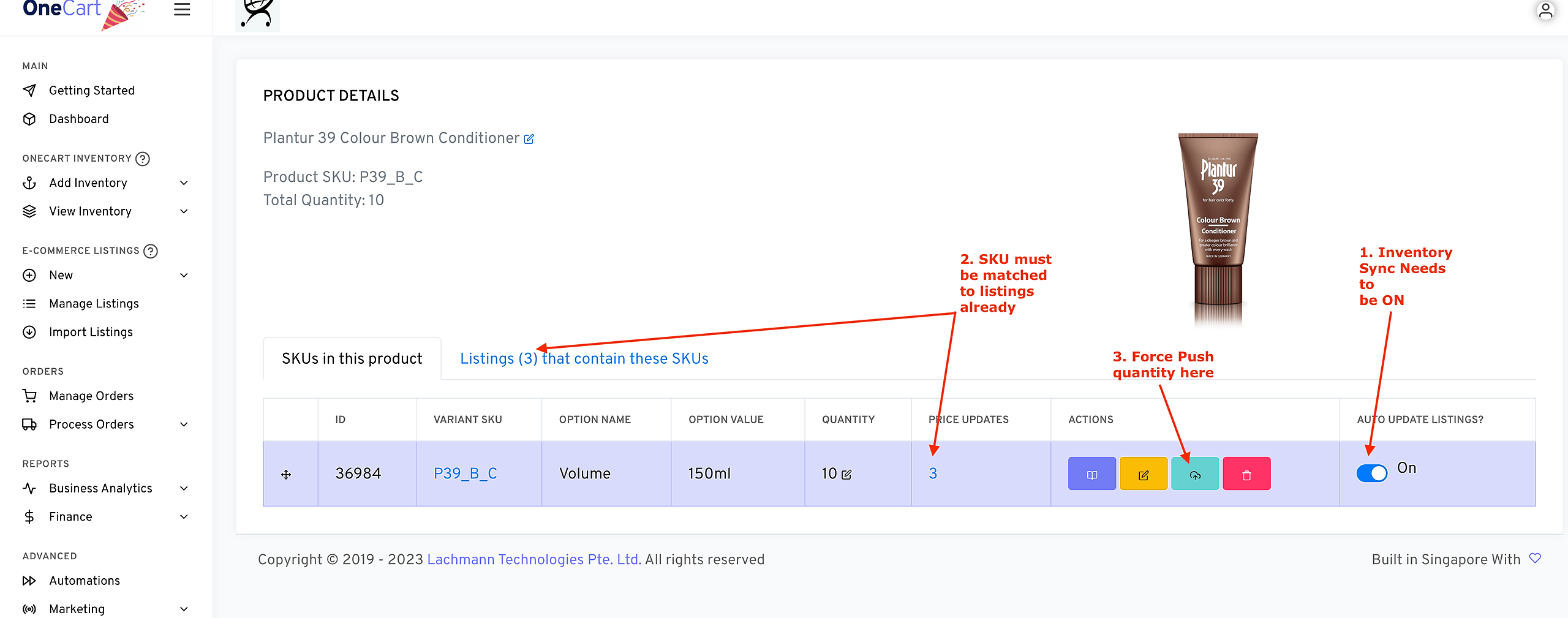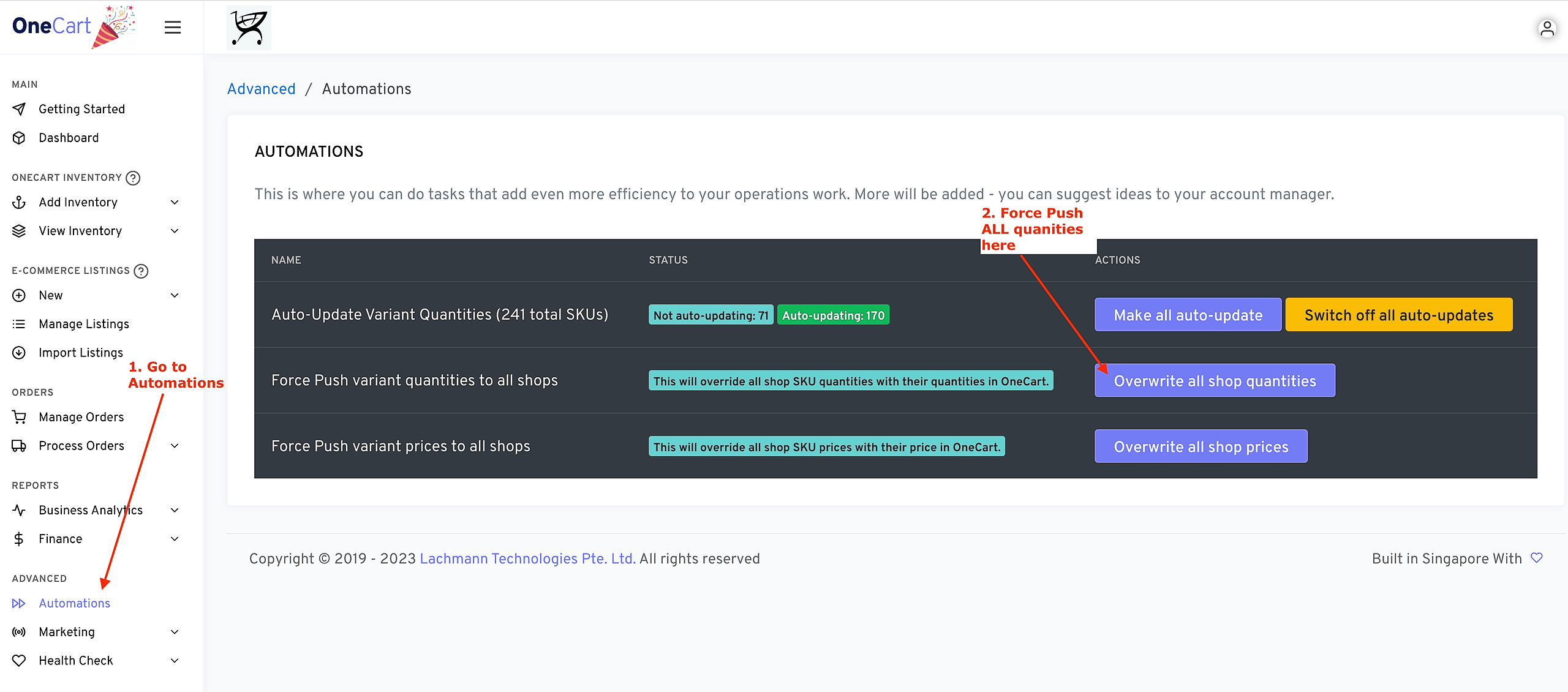You can quickly “push” OneCart SKU quantities to the matched SKU on your e-commerce platforms.