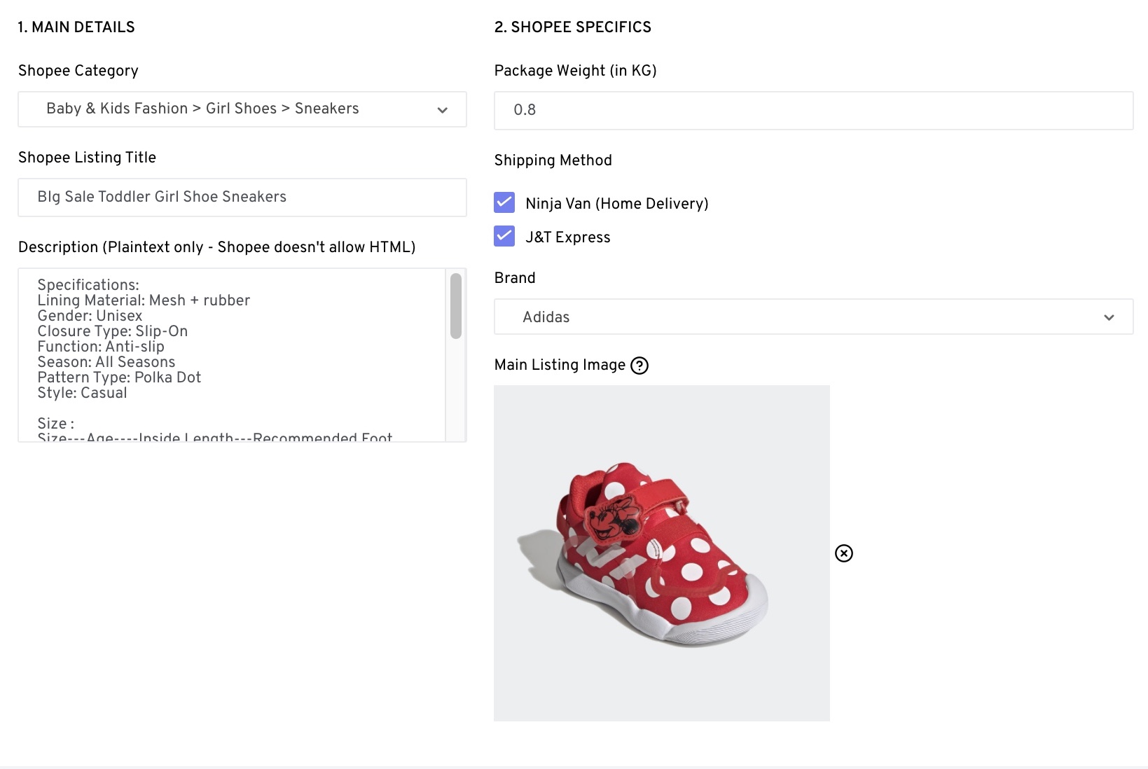 Description: Use Plaintext only. No HTML. Do not use ‘&’ characters as Shopee rejects that and you will get a ‘wrong sign’ error message.