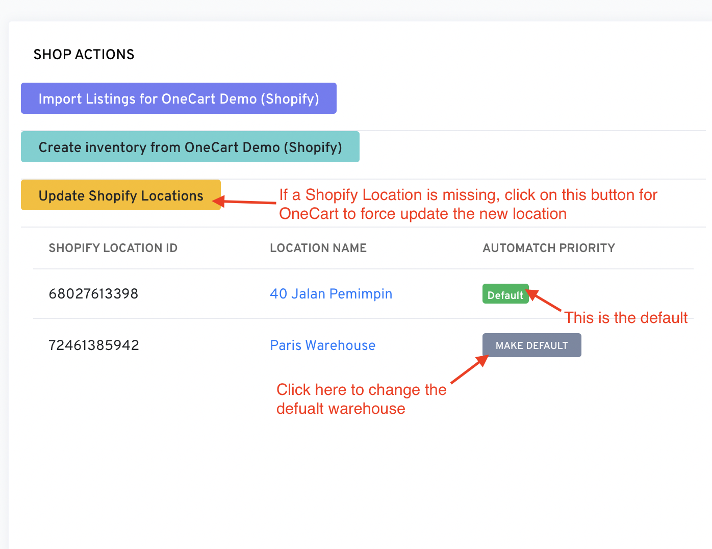 b) User can click any Shopify location in their account and they will see the listings matched to that location