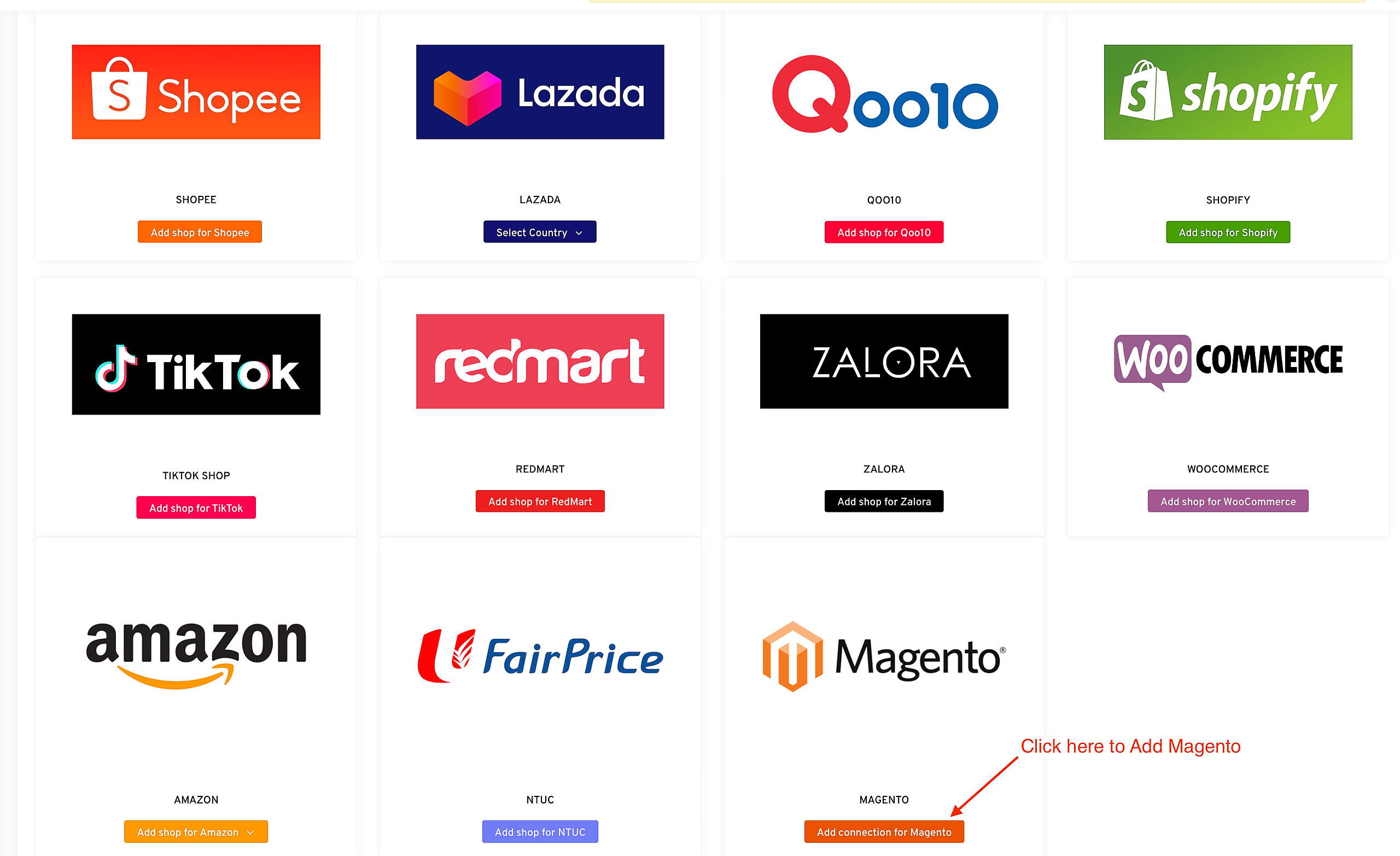 Select “Add Connection for Magento”