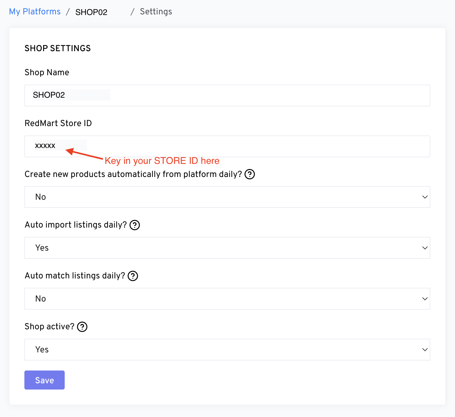 With the Store ID that you have retrieved earlier, key it under RedMart Store ID as seen below and click save!