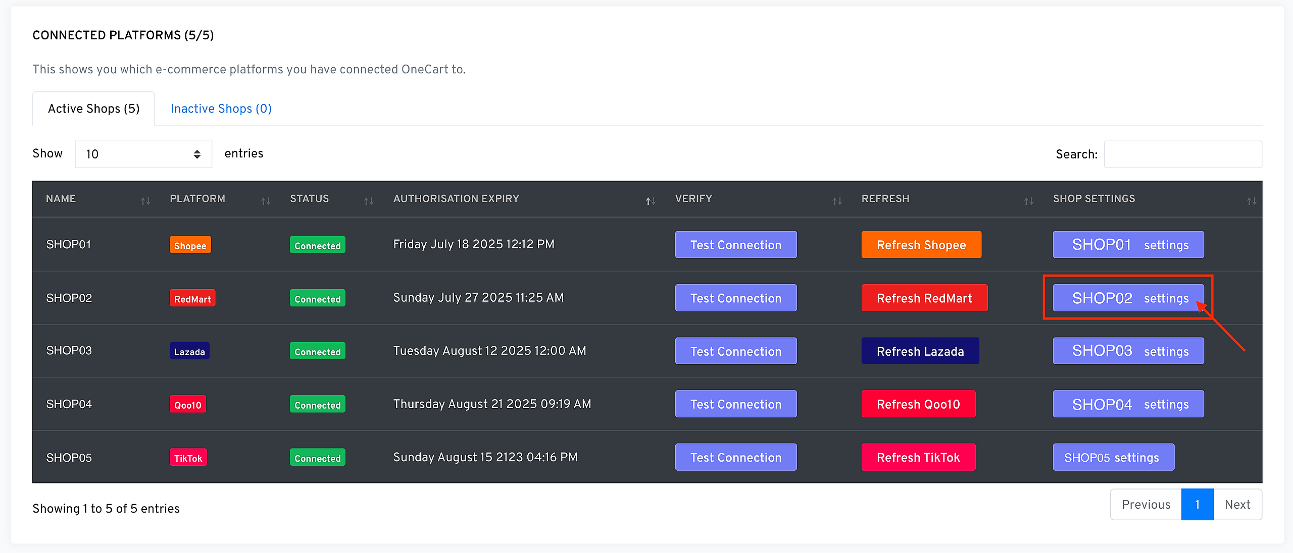 If you're selling on RedMart, here's how you can connect RedMart to your OneCart shops list.