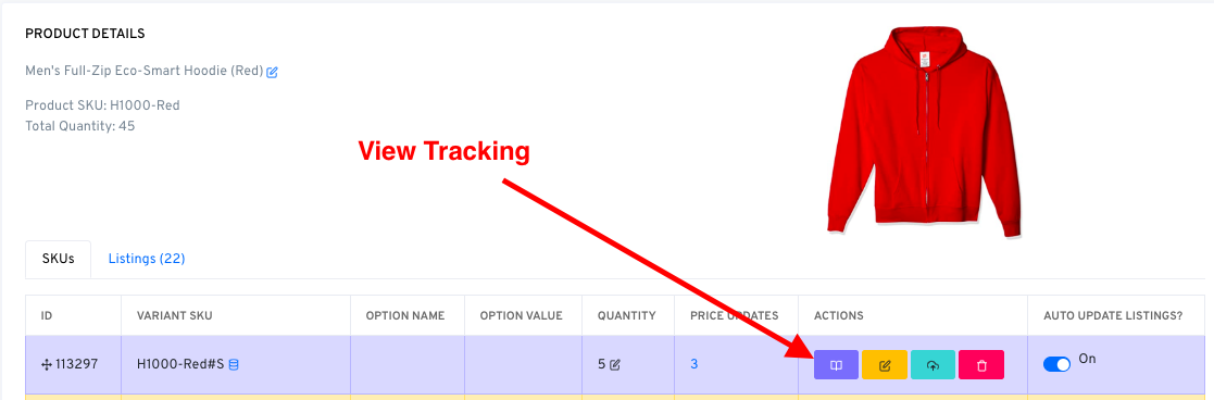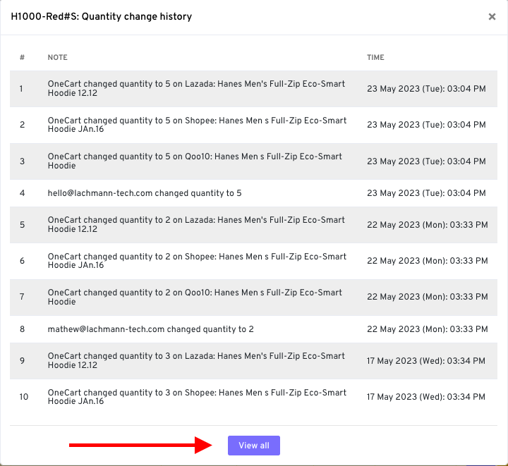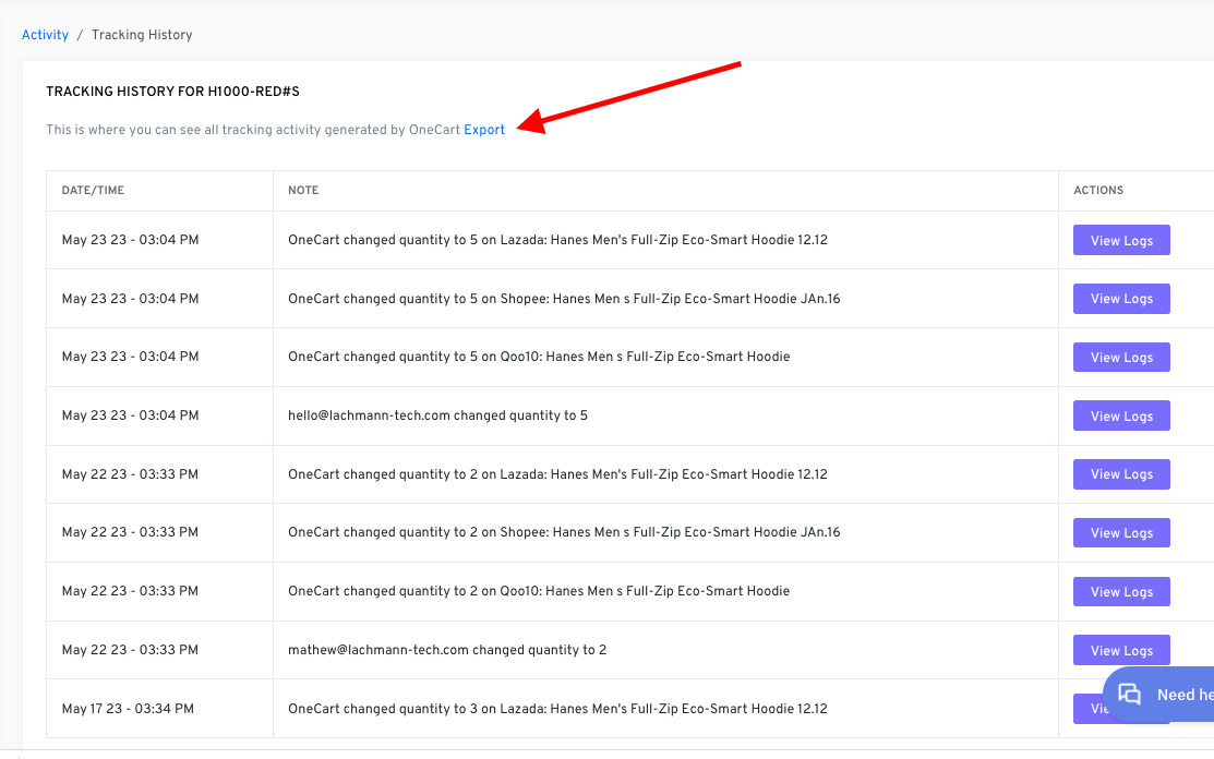 OneCart allows you to download the history of quantity and price updates for individual SKUs, via the tracking history downloads.