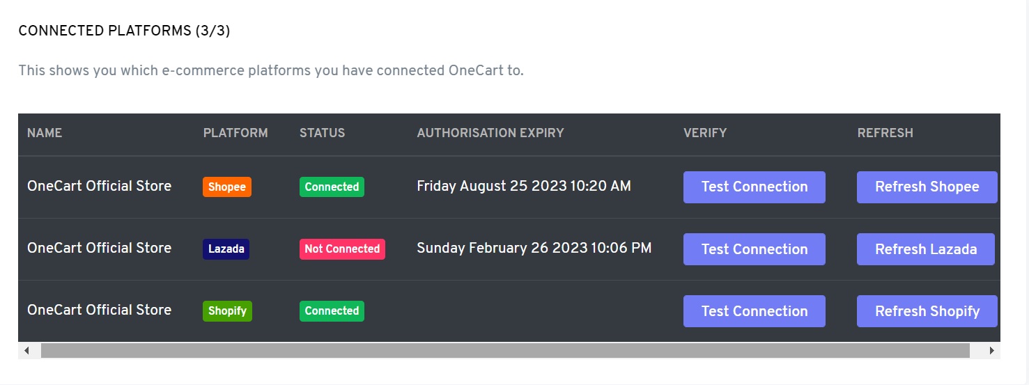 Here at OneCart, you have full liberty to edit the names of your connected platforms anytime. For e-sellers who engage in cross border selling on Shopee for example, duplicate names may occur during import, causing confusion. This can be easily rectified in 4 simple steps: