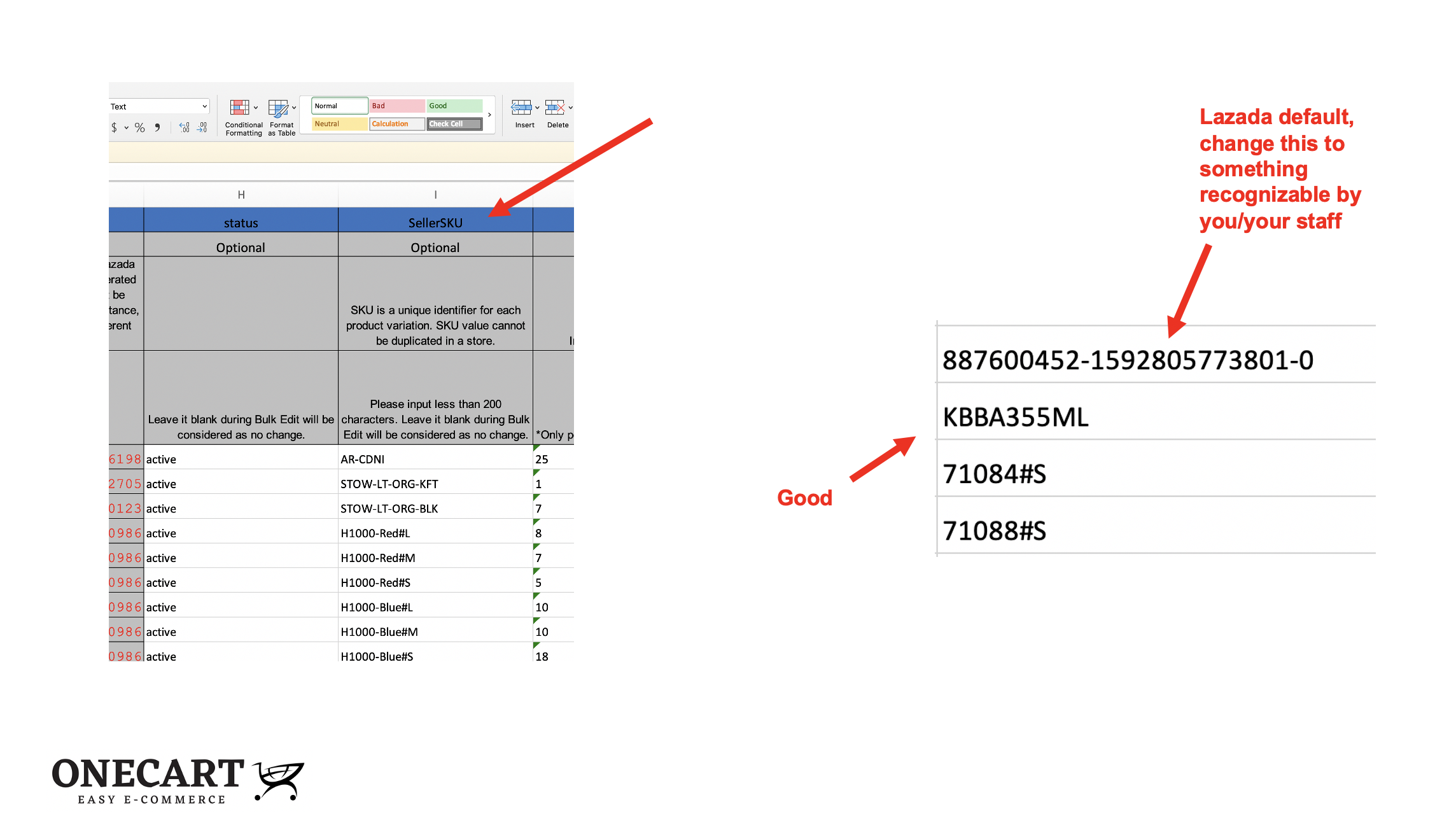 Once your SKUs are filled out, you can re-upload your file by following the article here: https://help.getonecart.com/help/how-to-re-upload-files-batch-edit-in-lazada