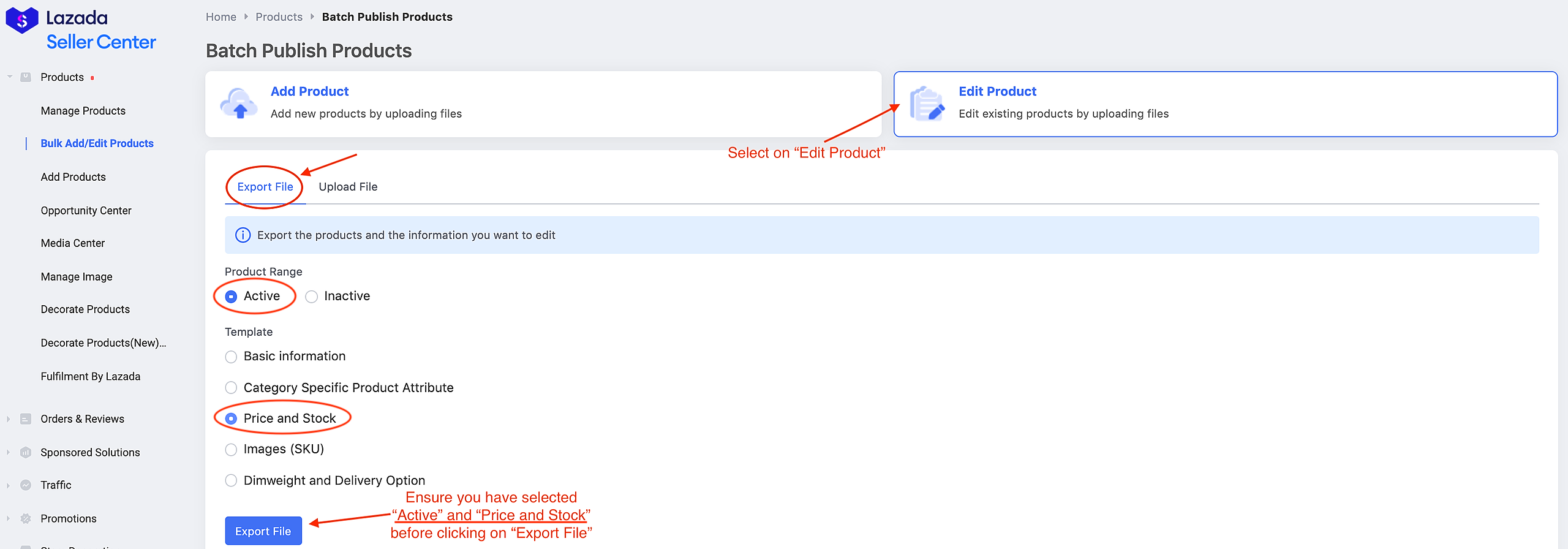 How to export Product List from Lazada?