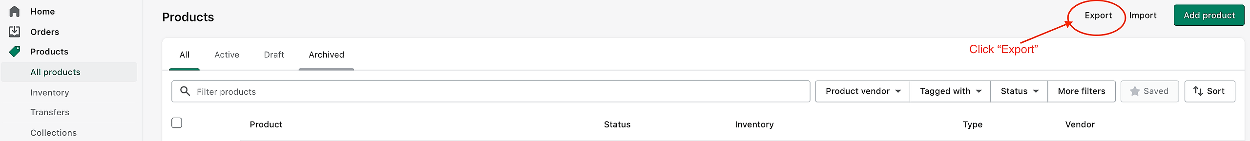 If you need to bulk update your SKUs into Shopify, here's how you can export your product list.