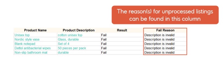 Find out why under the “Fail Reason” column at the end of the template. Then, amend the template and re-upload it.