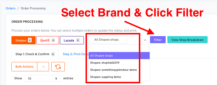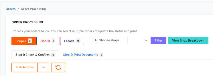 Select the marketplace you wish to process by clicking on the desired tab (Shopee, Lazada, or Qoo10)