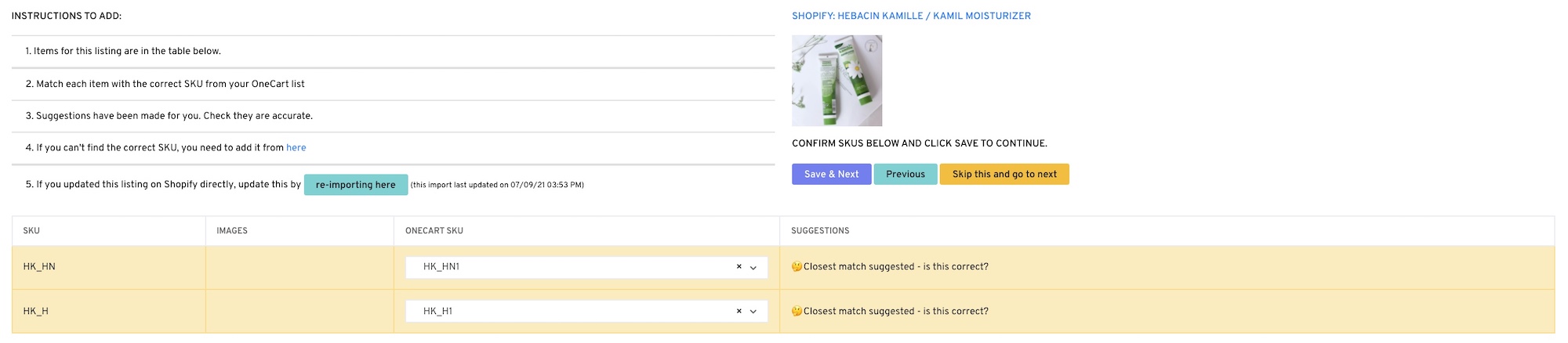 You have imported your platform listings into OneCart and would like to have the SKUs be auto-matched seamlessly.